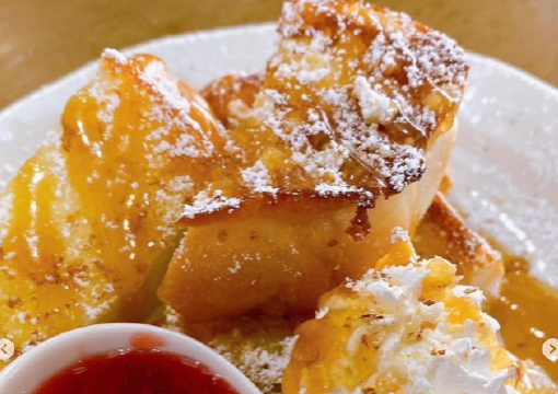 キャラメルソースを使った、トーストでモーニング用にいれている特別な食パンを使ったスイーツ。スタッフの声から生まれた、オリジナルのスイーツです。
